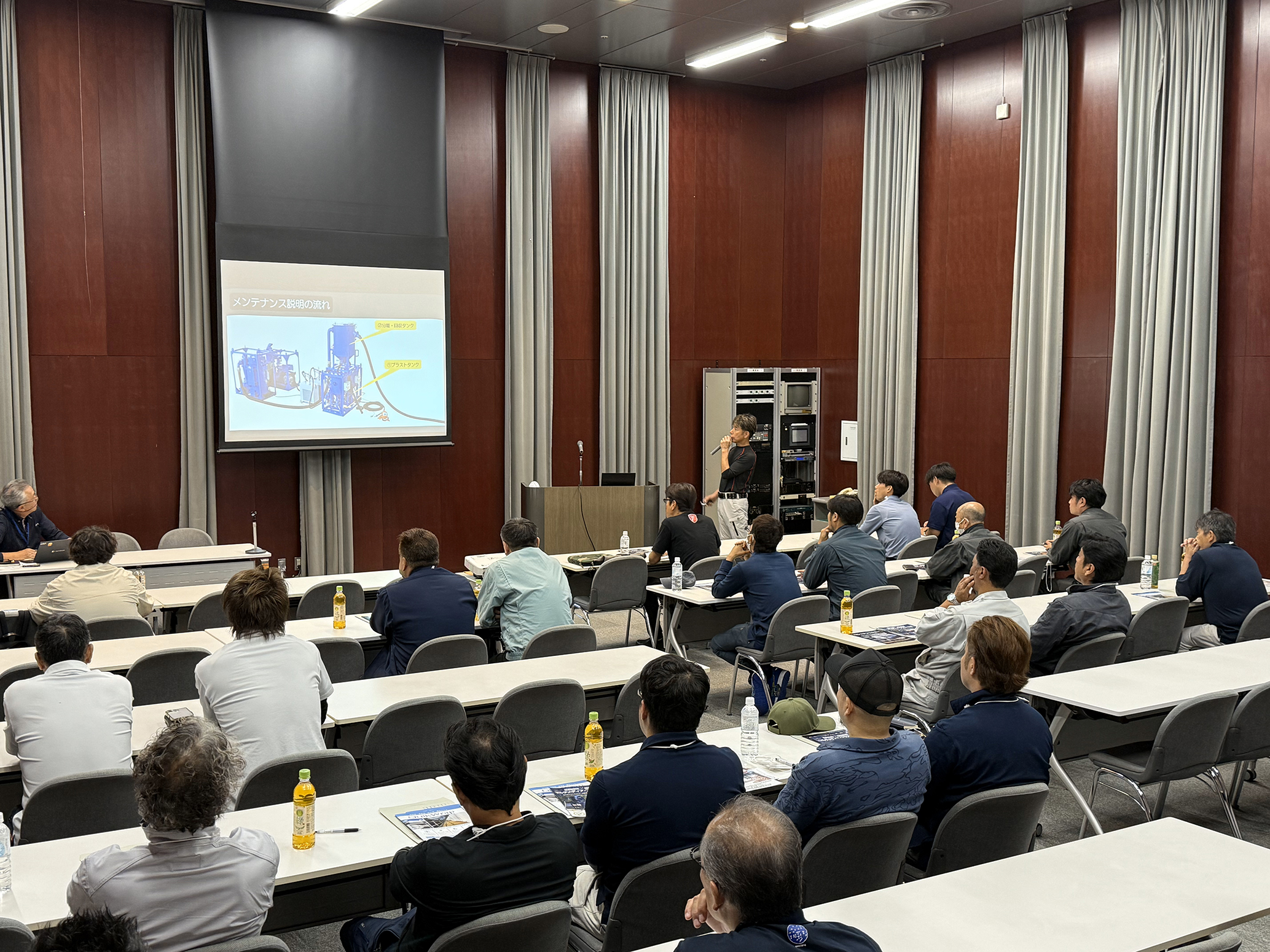 2部制に分かれてマルチメディアブラスト工法のメンテナンス研修会を実施、