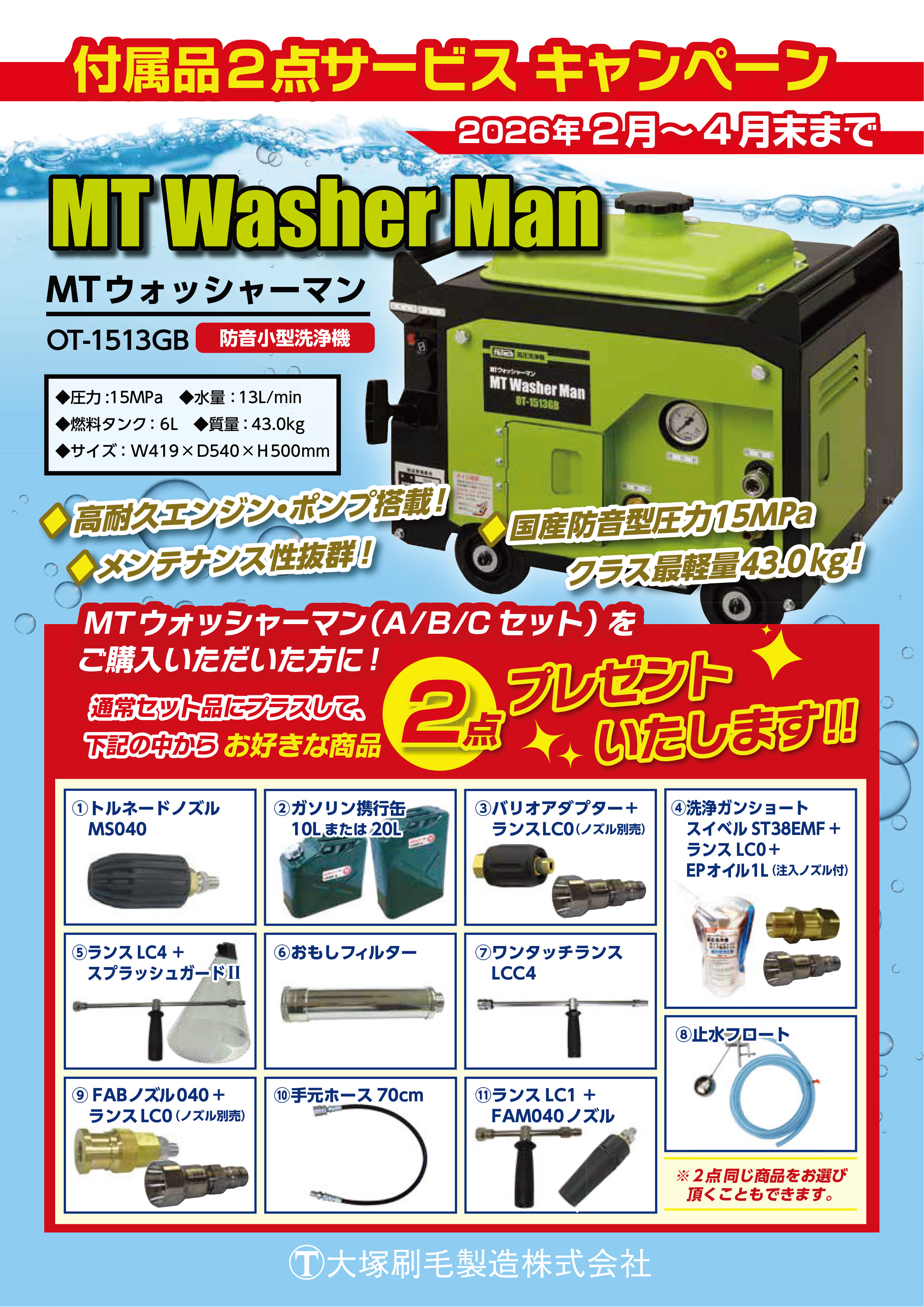 ~MTウォッシャーマン 付属品2点サービスキャンペーンのお知らせ ~